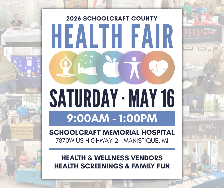 Mark your calendars for a day focused on health, wellness, and community! The Schoolcraft County Health Fair brings together local organizations, resources, and services all in one place to help you stay informed and take charge of your health.