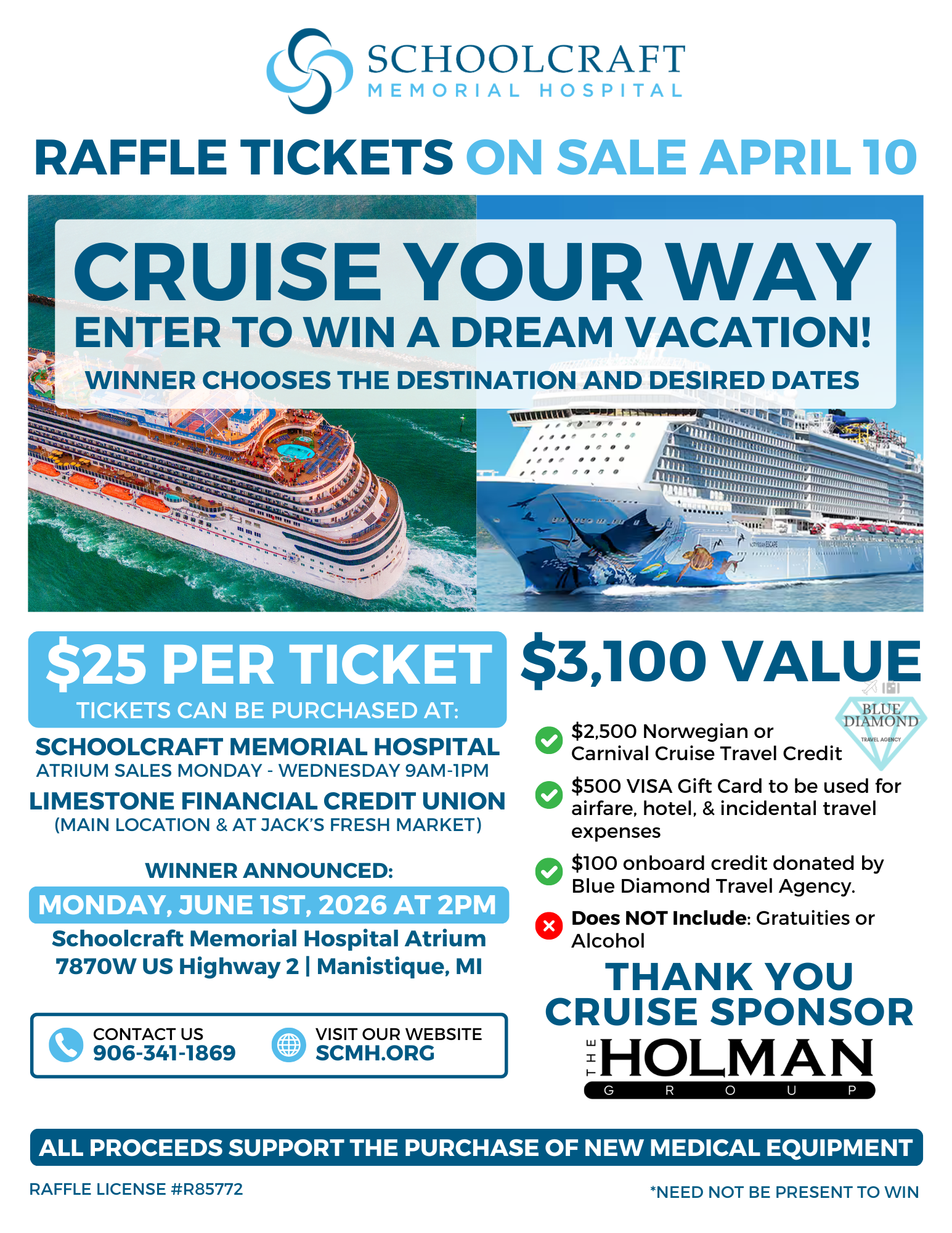 - Cruise Raffle – On sale April 10. Drawing June 1 as we officially launch year 76.
