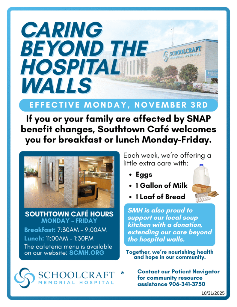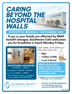 Schoolcraft Memorial Hospital is proud to launch an important community initiative to support families impacted by the anticipated SNAP food benefit reductions.