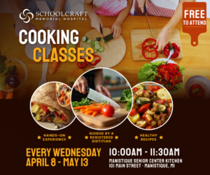 Schoolcraft Memorial Hospital is proud to partner with the Manistique Senior Center to offer a 6-week healthy cooking class. This engaging program will focus on preparing simple, nutritious meals while learning practical tips to support healthy living.