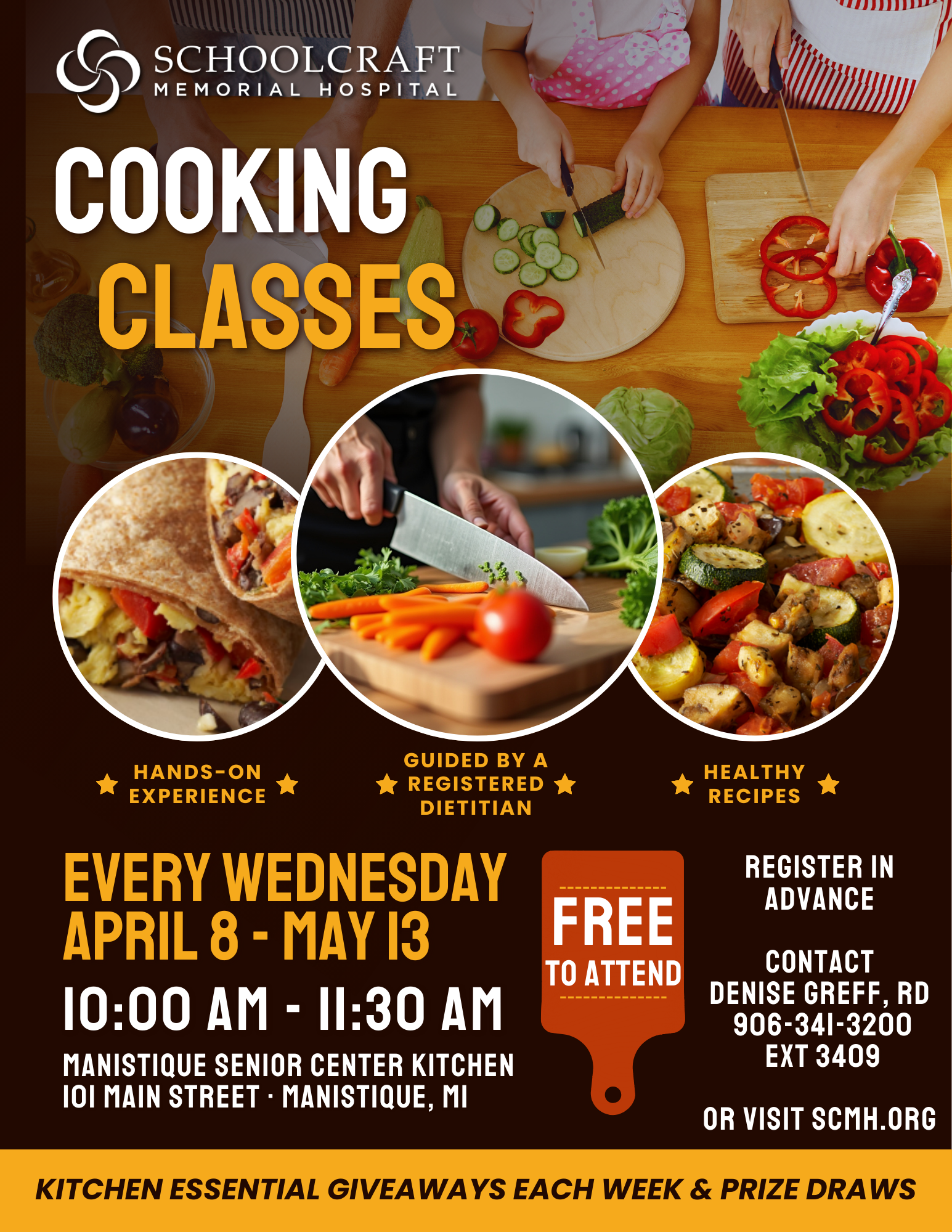 Led by Schoolcraft Memorial Hospital Registered Dietitian Denise Greff, participants will learn how to prepare delicious recipes that are both nutritious and easy to recreate at home.